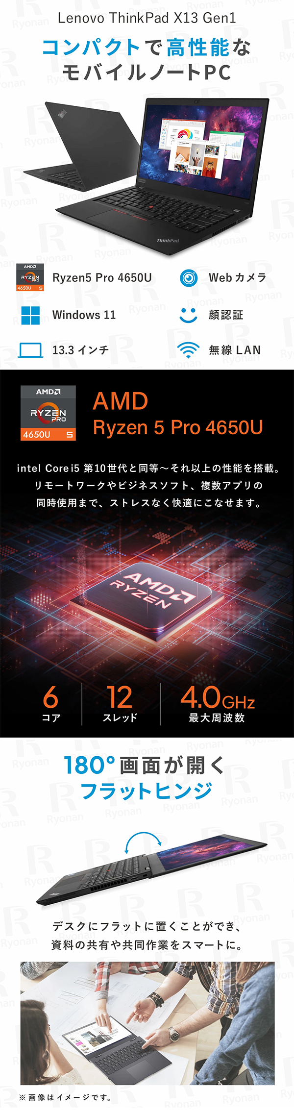 ▶ 楽天市場のサイト: 中古 ノートパソコン PC レノボ Lenovo ThinkPad X13 Gen1 AMD Ryzen5 PRO 4650U Windows11 13.3型 MS Office 2024 h&b