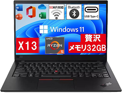 ▶ Amazonのサイト: 【贅沢なメモリ32GB】ノートパソコン ThinkPad X13 Gen1/13.3インチFHD/Ryzen5 PRO4650U/Windows11Pro/PASO ECOのWIFI/Bluetooth/Webカメラ内蔵/type-c/MS office2019/HDMI/日本語キーボード (SSD512GB)