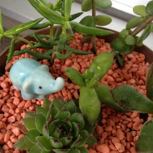 以前はどちらかと言えば苦手だった多肉植物に、なぜか突然ときめきを覚えて。そうしたら、居ても立っても居られず、タイガーバームを買うついでに100均へ走りました。5種類の多肉植物と、小さなバケツを買って寄せ植えを作りました♪小さなバケツなんですが、スカスカです。元気に育って、みっちりこんもりとなってくれるといいな♪