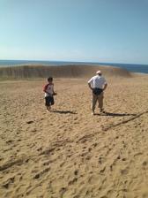 ただいま~~~家にたどり着いたのは、もう、21時回ってました。鳥取砂丘での時間を携帯で写真とってきました。今日は本当に、うだるような暑さ・・・・でも、風が少しだけあったので何とか・・・・もう、10年ぶりに来た砂丘!前にここに家族で来たときにはまだ息子は、歩き出したころだったかな?今では、もう、中学生!息子はうれしそうに旦那と、砂の感触に、はしゃいでた。この暑さにも、らくださんは、一生懸命仕事していて・・・・息子は初めて聞く、らくだの鳴き声にびっくり・・・・息子が砂丘の山を登って行ってる間、待っていた私・・・・息子が砂丘の山に登りつめて、日本海と、反対方面を激写そしてもうダッシュで、砂丘の山から駆け下りてきた・・・久しぶりに、家族で笑ったような気がした瞬間でした。その後、『梨ソフトクリーム』を食べて、家路に・・・・途中、立ち寄った道の駅!養父市の『道の駅ようか』立ち寄ることがあれば、ぜひタオルを・・・足湯を見つけて・・・足湯に足を入れてまったりと・・・・運転で疲れてる旦那は、少しだけ、ここの道の駅で車を止めて・・・眠っていた。ここのところ本当に長距離ばかり運転してるから・・・・でも・・・あたしに代わろうとしてもらえないので、無理だけさせないように・・・・そしてそこを出発して何とか無事帰宅。何もないことを祈る・・・・何もなければ、明日、あさってはゆっくり出来るかな? 20世紀梨・自家用・8-11玉・2.7kg
