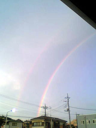 PM6:30頃、だったかな~ちょっと雨が降った後、日がおちる頃いきなり晴れ、これ角度的に虹でもでるのかな~な~んて空を見上げると・・・でてるじゃん何となく、二重に見えるけど時間的に、少しずつ暗くなる時間帯携帯のカメラなので、あまりハッキリ映っていませんが2重の虹になっていましただんだん暗くなってきたぞ~約30分でしたが、キレイでしたよ!今月22日、日食の前座なのか自然の素晴らしさ大きさなのか日食は、宇宙のイベントスケールは違うけど、虹はいつでるか予測不能だから~