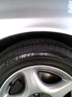 走り始め、パターンノイズはまったく聞こえない、なかなかいいかも!段差の乗り越えは、LM703のスポンジ付きのほうが静かだ。でもそれを除けば、かなり静かさハイレベルのタイヤだ。乗り心地はいいんだけど、追従性がイマイチ、というか感覚的にバネ下重量が増した動き、もしかしてこのタイヤ重いのかもしれない。スプリングがヘタッてくるとこういう動きになるけどね。さて、縦のグリップは?とりあえずトラコンスイッチOFFだと1速高回転でグリップを失うのでやってみた。おッ・・・ちゃんと加速する。縦のグリップはなかなかいい感じ。横のグリップは?速度を上げてコーナーへ侵入、切り始めはもの凄くシャープ、初期の反応は凄くいい、グリップ力もなかなかでコーナーでの腰くだけもないタイヤだ。これは高速で試さないと、ということで高速へ、あれ~速度があがるとこのタイヤの静かさがでるね。凄く静か、コーナーはスポーツタイヤと言ってもいいんじゃない。とってもシャープに反応する走っていて気持ちのいいタイヤだ。調子にのって限界まで攻めてみた。タイヤは悲鳴を上げテールが流れそうになったら、あちゃ~制御がはいってアリストはそれ以上のことはやらせてくれない まあ仕方ないか!そういうクルマなんだから!さてこのVEURO VE301、黒70的には『とっても静かな、快適スポーツタイヤ』だ。街ち乗りより高速道の方が性能が実感できるタイヤだ。高速道を多用する方には、ベストなタイヤでした。
