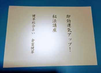 実は・・・現在、次の「秘法講座」のアイデアが浮かんできています。そして、既に私自身がモニターとなって実践しています。これまでの「秘法講座」も同様ですが、確実な運気アップ効果がなければ披露出来ません。3ヶ月程度、色々と実験してみます。予定としては、10月くらいに新「秘法講座」としてお披露目出来るようにやってます。この「秘法講座」もこれまでの「秘法講座」と同様に、誰でも簡単に運気アップ効果が見込まれる内容です。あまりに簡単に運気アップ効果が見込まれるので、人生が楽しくなるでしょう。受講開始までは、これまでの20種類の「秘法講座」を実践してください。現在「夏の福袋キャンペーン」で過去最安値で「秘法講座」「SP講座」が受講出来ます。「夏の福袋」キャンペーンの詳細は下記ページをご覧ください。●●今月のランキング・キャンペーンのページ!(「夏の福袋」キャンペーンの情報はこのページをご覧ください)画像は「即効運気アップ秘法講座」表紙です。この秘法は運気アップパワーを発するドライヤーを使用することで、確実に運気アップパワーをもらうことが出来ます。これまでのドライヤーから交換するだけで、家族全員が邪気が取れてクリアになり運気アップパワーをもらえます。普通にヘアドライヤーとして使用するだけでOKですので、家族全員が毎日自然と運気アップ出来ます。さらにお部屋にこのドライヤーの風を流すことで、お部屋の邪気を取りクリアになりパワースポットの空間になります。その空間で過ごすことで家内安泰、学業上達、子孫繁栄となります。また店舗、事務所等でこのドライヤーの風を流すと商売繁盛、千客万来となります。邪気を排除してクリアなパワースポットになりますので悪い人物は寄って来ないようになります。まさに、ノーベル賞ものの最高レベルの運気アップアイテムです。ぜひ最安値の今、受講をお勧めします。「パワー水作製キット」や最新の「即効運気アップ!秘法講座」「除菌&邪気祓いSP講座」「総合運気アップ&超能力開発秘法講座」「オーラのパワーアップ秘法講座」「運気アップ!+若返り&体調パワーアップ秘法講座」その他各秘法講座、SP講座の受講申し込みは下記ページをご覧ください。●●●占いスクール・秘法講座・体験談のページ!運気アップグッズの詳細は下記ページをご覧ください。●●●最新グッズのページ!●●●画像、写真による「オーラのパワーアップ」「ツキ玉ペンダント」「運気アップパワー入魂」「大金運パワーBOX」のページ!●●●「健翠総合占い」運気アップのホームページ!●●●クレジット使用可の「秘法講座」等のページ!●●●「除菌&邪気祓いSP講座使用アイテム動画(2枚目です)●●●ココナラ相性占いのページ!(相性を%で占います)