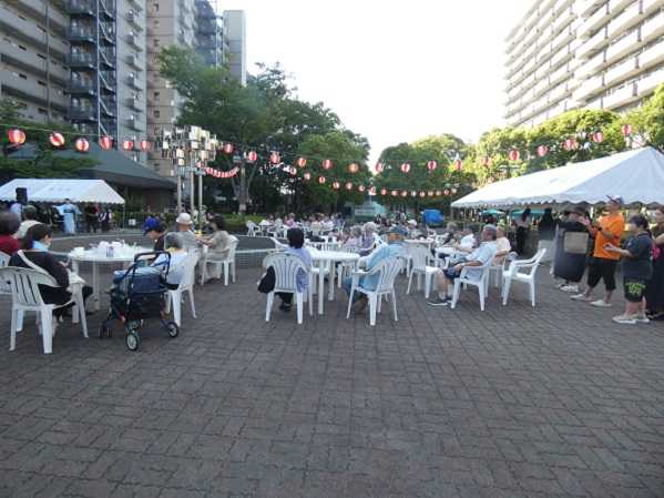 左側奥がステージでその前から沢山の椅子やテーブルが並べられキッチンカーや出店で購入した物を会食しながらイベントが見れます。