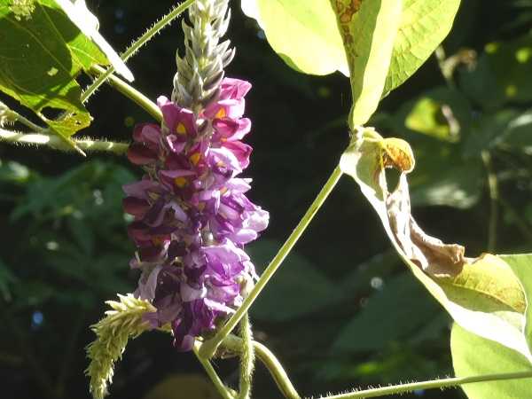 弦を伸ばしなににでも絡まって伸びている。根っこからはくず粉が撮れるとか奈良の方で利用しているらしい。9月6日撮影