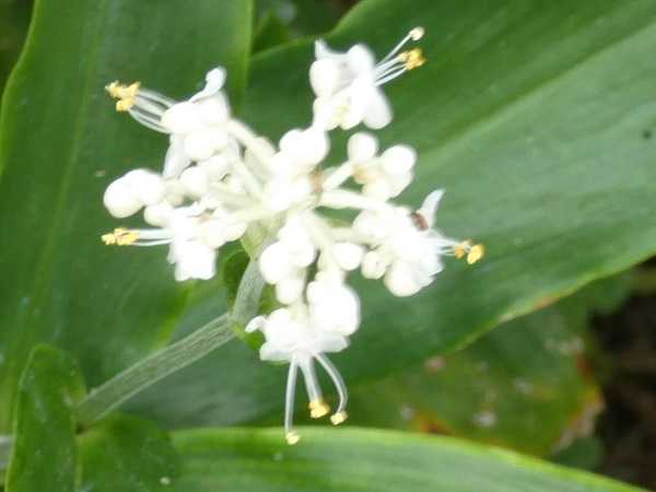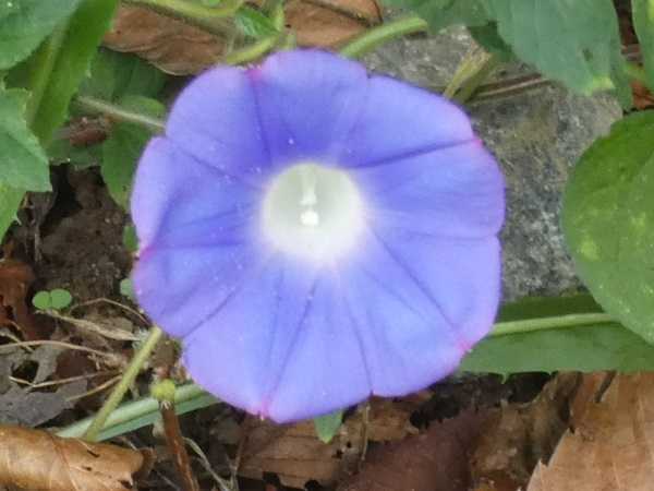 民家の屋敷林の中に一株、ヤブミョウガ、脇には野朝顔がブルーの花を咲かせている。9/11撮影