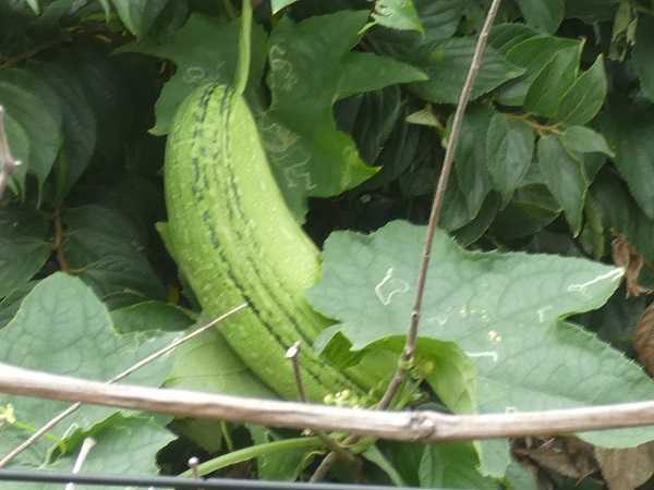 帰り道で黄色の大きな花を見つけ何かと思ったら葉陰にあったヘチマの実を見つけブログネタです