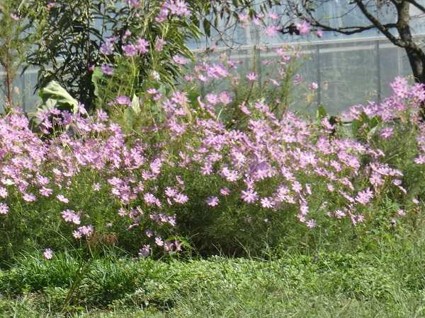 休耕地のあちこちで咲き出したコスモス。山口百恵の歌が懐かしく思い出されます