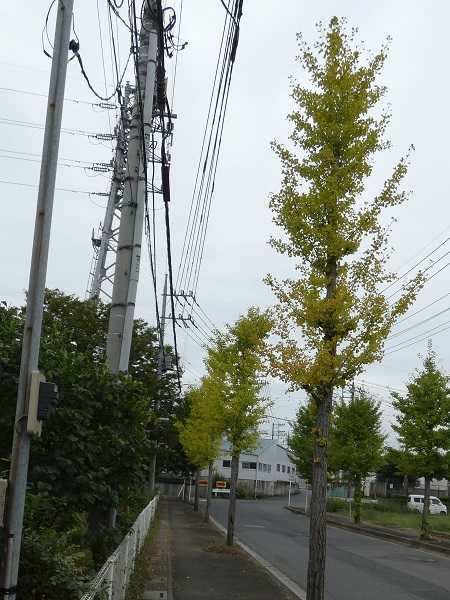 街路の銀杏並木も色付き始めました。木が若くまだ実をつけなくて紅葉している。10/14撮影