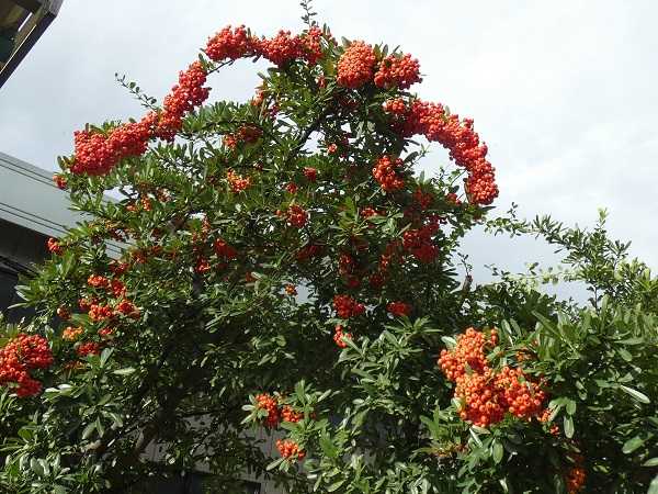 秋に目立つ赤い実をつけるタチバナモドキ、別名、ピラカンタという名前も持っている