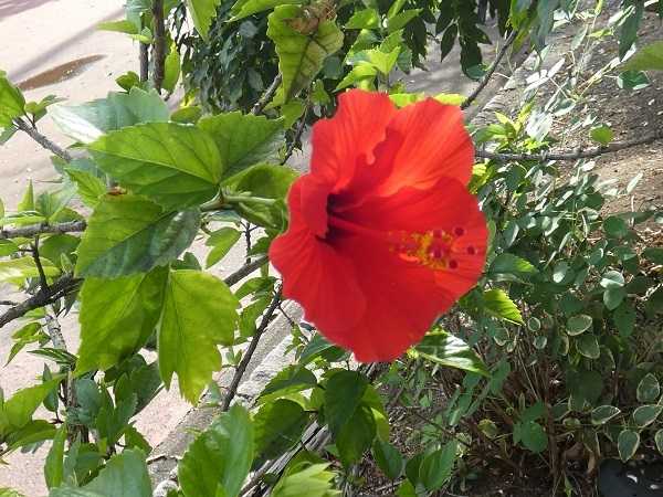 民家の玄関わきの鉢植えにハイビスカスが咲いているが鉢植えで花気がくるっているのかな? むくげも咲いているし葉鶏頭は紅葉していて植物で四季を感じる事が出来なくなって来ている公園で大きな花を咲かせていたタイサンボクも実をつけ始めた。こちらは正常です。10/12撮影