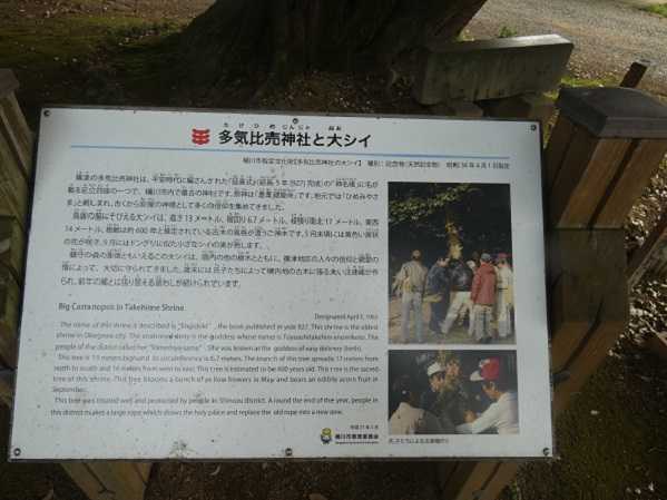 篠津桜堤の先の多気姫神社の境内には大きなクスノキがあり神木としてしめ縄を巻いてある本殿前と脇と左手に大きなクスが3本あり、夏の暑い日には木陰で一休みできる。9月10日撮影