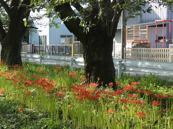 篠津桜堤に向かう工業団地脇から桜堤まで並木の下に彼岸花が群生していてやっと開花しだした 今年は暑さが厳しかったためか例年より開花が少し遅れたようですが彼岸に合わせて開花ですそれでも桜堤までの1kmくらいに並んで咲く姿は圧巻です。日高の巾着田まで行く必要もないし意外に知られてなく知っている人も少ない。9月21日撮影