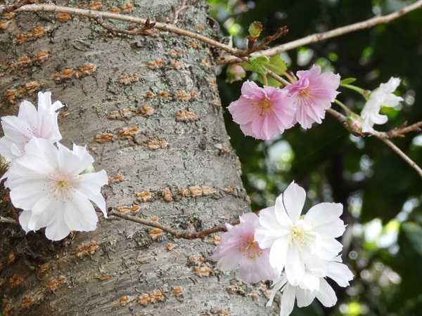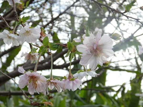 今頃桜と思われそうだがこの桜は今が旬の10月桜です。秋に咲く桜は小福桜と10月桜です kこちらの4カットは異常気温で狂い咲きしたソメイヨシノです。暑い日が続き気温が下がってくると狂い咲きします。10月桜や小福桜は狂い咲きではありません。10月12日撮影