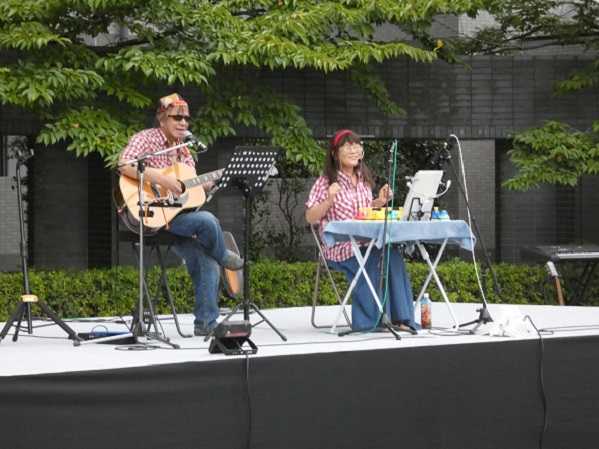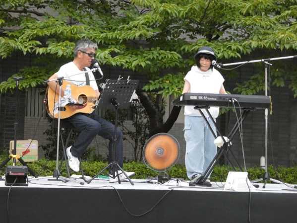 弾き語り、PGSのステージ、この人たちもマンション居住の人らしい この男性はおん歳64歳とか言ってたが中々声量もあり歌にひきつけられましたk演奏しながら一緒に歌ってましたがイベント最後の出し物で頑張ってい増した。 8月30日撮影