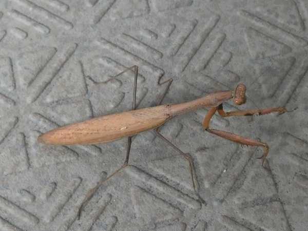 玄関を出た共用通路にカマキリがじっとしている。こんなところにいると踏みつぶされちゃうぞ 捕まえようとすると鎌を持ち上げて威嚇するが疲れているのかすぐ鎌をおろしてしまうあたまを振ってこっちを見たので最後の写真を写しつまんで木に止まらせておいた。 9月4日撮影
