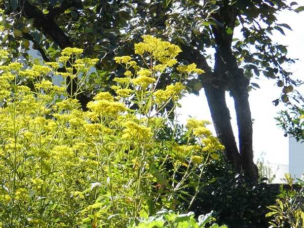 アキノキリンソウも咲き出しが花粉症の人には厄介な野草でブタクサと共に花粉症の元凶です 草藪のあちこちにはびこり繁殖力もすごくて群生していると綺麗だが花粉症の人には嫌われるこの時期になると咲き出すキンモクセイ、アルフィだったかな素敵な歌があったが痴呆症が出てきてはっきり思い出せません(涙)10月8日撮影
