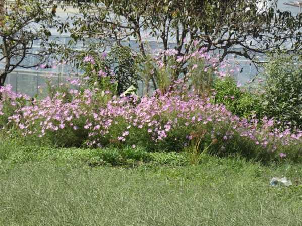 園芸業者の育成地脇に咲いている10月桜、この桜は春と秋に咲く桜で狂い咲きではありません民家の玄関わきに鉢植えに咲いているサンパラソル、和名は忘れてしまいました。10月5日撮影