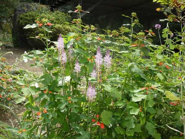 民家の庭先で咲いていたツルボ、脇には猩々草が葉を赤く染めていた。ツルボは返り咲きかな? 畑の端にうえられたヤブランが咲き出しているがこれも返り咲きかな?春先にも咲いてたなー草藪簿中にはフジカンゾウ、これも花期の長い野草です。下から次々開花します。 9月30日撮影