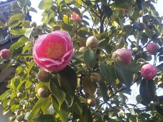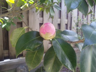 ピンクの椿 日々色がついてきて(^O^) 咲くのはいつかな?