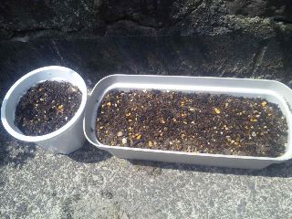 5月の10日頃に種を蒔いた日日草 芽が出ないので諦めて もう一度蒔こうかと思っていたのですが 今日鉢をのぞいたら ヤッタ!出た~o(^▽^)o うれしくて水あげました ずっ~と寒かったから 土の中から出たくなかったのかなf^_^;