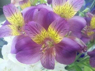 毎年職場に届けてくれます(^O^) やっと名前覚えました、「アルストロメリア」 定番のピンクの中に白色とこの紫があって アクセントになってました(^O^) この花はお客さんも目がとまり話かけられますf^_^;