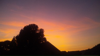今日の夕日は 朱くならずに 黄色でした 紅葉は赤も黄色も 綺麗ですが 黄色の夕日は どうだろう?