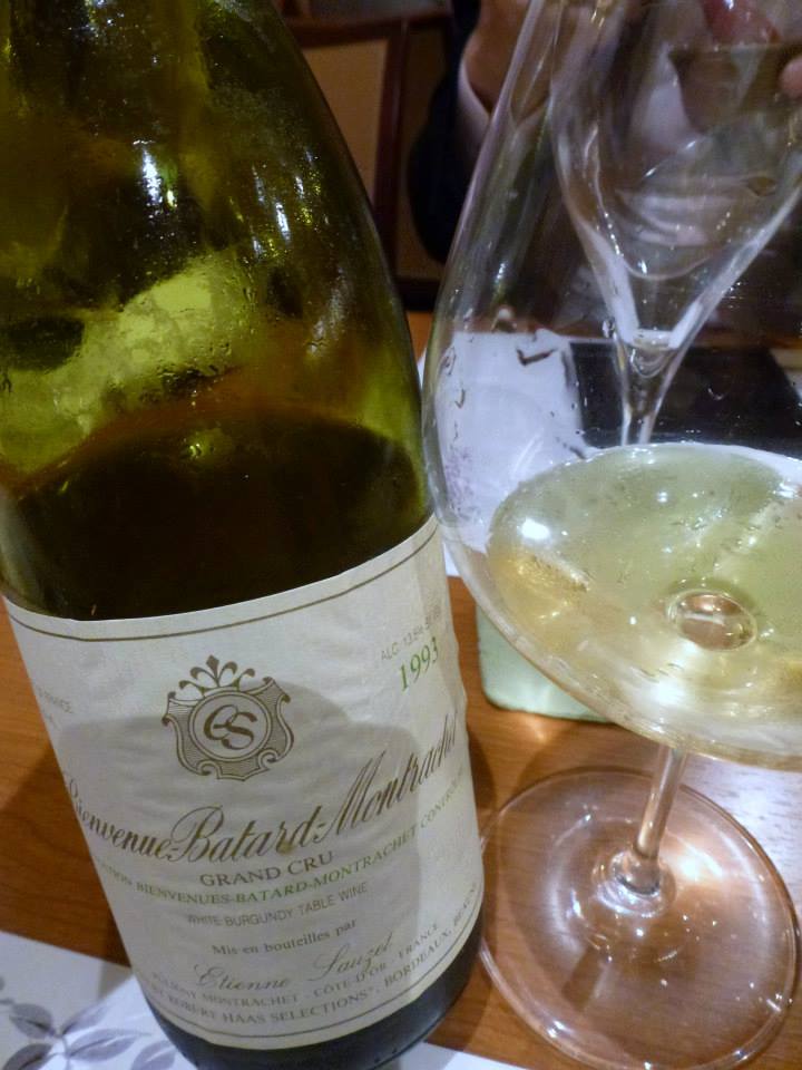 私のワインのキャリアは、イタリアの白から始まり、ボルドーの赤で迷い込み、ブルゴーニュの赤でどっぷり嵌った。まぁ王道である。しかし後戻りできないほどになってしまったのは、やはりブルゴーニュの白の魅力に憑りつかれてからだろう。当時の私にとって、ブルゴーニュの白は高価で状態にシビアな、手の出しにくい存在だった。赤と違って気軽に熟成したものを口にできるわけではないし、GCともなれば尚更だ。そんなときに、私に熟成した、状態のいい、上質な白ワインを飲ませてくれたのがcharさんだった。初めてお会いしたのが私がこのブログを始めたあたりのことだから、今からもう7~8年前になる。奇しくも誕生日が同じで、家族構成等も似通っていたこともあって随分可愛がっていただいている。夜の街を共に酩酊して歩き、悩みを相談し、共に汗を流し、数年前には結婚式で乾杯の音頭まで取っていただいた。師匠のような、歳の離れた兄のような存在である。素晴らしいワインを知ることができたのも人生の大きな歓びの1つだが、それよりも、ワインを飲んでいなければ知り合えなかった人がいて、その人たちのおかげで人生が豊かになっているという事実。このこと自体が何より有難いことだ。今回の1本は、先日Charさんと合同誕生会をしたときに持って行ったもの。CharさんがLeflaiveのBatard86ということだったので、近い年のSauzetのBatardを併せてみた。また昔の話になるが、CharさんといえばLeflaiveのイメージだった。で、触発された私が白で最初に好きになったのがSauzetだった。幾度となく対決をしたけれど、LeflaiveとSauzetの対決をしたことはなかったように思う。ここまで書いて、何だかワイン自体のコメントはどうでもよくなってしまった。やはりこのワインを、合同お誕生会で飲めたことに意義があったのだし、それですべてなのだ。