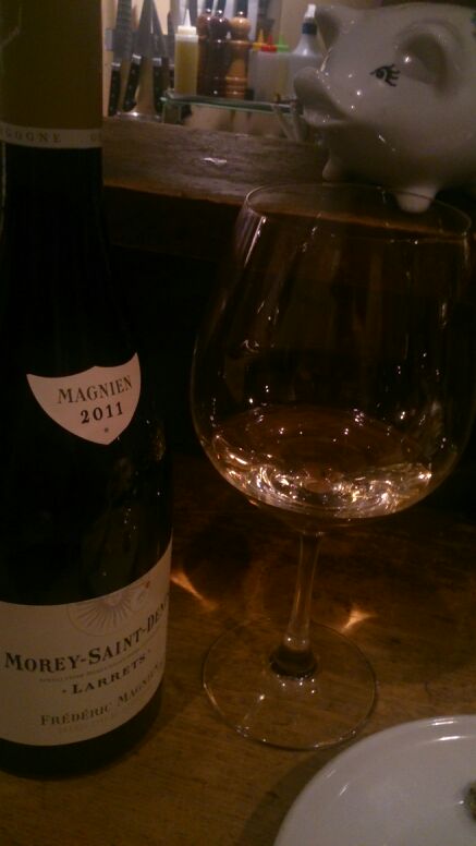 僕が東京のフレンチで最も好きな店の一つ、aux Legume。昨年赤坂から駒込に移転されました…ので、遅まきながらお邪魔して。持ち込ませていただいたのが今回の一本。ちょっと色は濃いですが、状態は極めて健全。香ばしいトースト香、バター、キャラメル、たっぷりのミネラル。モルジョですから凄みはないですし、トーンが凄く高い分け与えでもないですが、飲み頃のワインを飲める楽しみはやはり格別。お店のお料理も、移転してさらに磨きがかかったよう。塩でなく旨味で食べさせる。見た目も美しい!また近々行きたいですねー。懐かしい看板。