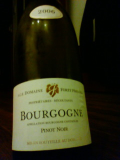 結構色々良いものも飲んでいるのですが、それらの記録をUPするには何故だか気が向かないので、取敢えず飲み貯めた2006年のブルゴーニュについての雑感を。勿論全てを記せる訳ではありませんが、特徴的に感じたものを記そうと思います。何分若輩者の個人的な感想ですので、その分を差し引いて読んで下さいませ。■Dom. Forey Pere et Fils / AC Bourgogne rouge 2006 何だか昨年くらいから人気急上昇なフォレ。ゴーディショなんか抱合せ販売の対象になっちゃったりして、「そんな大した造り手だったかい?」とお思いの方も多いかと思いますwで、裾野のACブルですが。濃い紫に梅酒っぽい香の立ち上がり、味わいにはまだタンニンが残り収斂味が強い印象を持ち、ちょっと抽出強めな印象を持ちますが、極めてエレガント。数時間後には大分物腰も柔らかくなり、黒系果実8、赤系果実2位の割合ながら、ハイトーンなまとまりも見せて中々の仕上がりです。数年後が見てみたい、と素直に思ってしまいました。正直にいって、言われるような06の弱さは感じませんし、今飲むなら05より06の方が美味しいのではないかと思います。□Louis Latour / Chablis 1er "Fourchaume" 2006 友達のお土産品。しかし遠慮なく記録させて頂きます(笑)。# ごめんなー、ダンナw色は極めて薄い金色、照りはあります。香も物腰も柔らかく、近付き易い印象ですが、味わいも全く同様で、ボディに締りがありません。「くびれ」がない印象。決して美味しくなくはない。香は甘いし、魅力的な第一印象なのだけれど如何せんボディが緩過ぎる。うーん。。。□Dom. E. Sauzet / AC Bourgogne blanc 2006 前述のルイラツよりは濃いけれど、やはり薄めの金色。輝きあり。香は例年より甘めではありながら、しっかりレモンや独特のミネラルの煌きがありソゼの世界を醸し出しています。味わいも同様に、親しみ易く、甘い。しかし決定的にボディが緩い。香は甘く、おそらくは例年に比べて遥かに一般受けするでしょう。しかし僕の考えるところのソゼの美徳、美しさと儚さ、そして線の細さ、それと論理的には相反しながらも同居する強かさ、凛とした線、清廉さ。そういったものは感じられません。まぁ半分以上思い入れですが(苦笑)、中盤以降のダレは間違いないところでしょう。上のクラスではどうなっているのか、ACブルを飲んだだけではわかりませんけれど僕には短期で04、長期で02や00を超えるとはとても思えませんでした。***今までのところ、赤は言われている程酷くはなく、白は言われている程素晴らしくない(価格を考えれば『全く』)、というのが感想です。大体ね、ドラ○ンボールじゃあるまいし、次から次へと過去の敵(Vt.)を超える敵が現れてたまるかと。そういう感じじゃないかと思ったり思わなかったり(笑)
