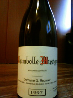一瞬にして市場から消えるのに、そしてそれ程多くの人がきちんと熟成させているとも思えないのに(笑)、「飲んだ」という話をさっぱり聞かないルーミエ。誰が買ってるんでしょうかね?謎です。まぁルジェも似たようなものですけど。■Georges Roumier / Chambolle Musigny 1997 思ったより褐色の入った色調。海老茶のエッジ。香にも熟成が感じられます。獣臭、なめし皮、スーボワ。赤系果実を潰して濃縮して蒸らした感じ(笑)妖艶です。味わいも甘く、とろみが感じられます。シャンボールっぽいとかそういうことを考える以前に、1つの液体として非常に完成されています。やっぱり美味しいなぁ、これ…。余韻の長さやスケール感は上級キュヴェには適いませんが、思わず唸ってしまう1本です。買ったのは5年くらい前、確か税込みで6Kしなかった筈。ただ、05のように15Kともなると、その価値はかなり疑問だと思います、はい。素晴らしく完成された世界観を持ったワインだとは思うけれど、美味しいシャンボールを飲みたいなら他の選択肢もあるし。もちろん素敵なワインで、抗いがたい魅力はあります。でもねぇ・・・(苦笑)