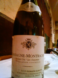 一時より確実に評価が下がっているとはいえ、ラモネにはラモネにしかない特徴がある。そしてその『らしさ』が在る限り、僕はラモネを愛せる。お陰様でラモネは結構持っていて、飲む機会も多かった。97位までは本当に美味しく飲めたのだけれど、少なくとも98のシャン・カネ、ブードリオットには酸化傾向が見られ(勿論ボトルに共通して)、99~のボトルにも明らかに熟成が早くなっている傾向が感じられた。更に、先日Koichiさんに飲ませて頂いた04ビアンヴィニュも比較的素直で若いラモネによくみられていた、苦笑い必至の寡黙さはなかったように思う。何だか違和感というか、戸惑いを感じてしまう。というわけで、1年半前には固かった00及び01を検証。□Ramonet / Chassagne Montrachet 1er "les Chaumees" 2000 色は艶のある薄いゴールド。最初の10分位は大人しいけれど、すぐに開いて独特の香爆弾が炸裂。味わいは蜜感たっぷりながらもミネラリーで美味しい。ラモネの強い香は食事とどうかな、とも思ったけれど、この味わいなら十分にOK。華やかでかなり美味しい。しかしやっぱり素直に開き過ぎる気が…。00のラモネ1級ですからねぇ…。兎に角、もう十分飲み頃の域にある。□Ramonet / Chassagne Montrachet 1er "les Ruchottes" 2001 1級トップのルショット。前述のショーメより、より強くシャサーニュらしさが出ている。色合いはショーメより僅かに濃いゴールド。輝きと照りがある。香も最初から素直に開き、まさに香爆弾。味わいにも厚みがあり、流石ルショットだと感じさせられるが、随分素直に美味しい。まだ伸びしろは感じられるが、飲み頃。ラモネ節はちゃんとあるし、開けてすぐ美味しいワインは有難い。でも買って、自分で熟成させて飲む、ということを楽しみにしているワイン好きとしてはそれを素直に喜ぶことはできない部分がある。やっぱり飲み頃が早すぎる気がするラモネ。98~のものを長期間放置するのは、個人的にはちょっと怖い。某店に04が山積みになっていたけれど、買い足して寝かせるかと言われれば…。うむむ…。