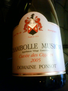 狂乱と呼ぶべき人気だったポンソの2005年。なぜかロシュよりもACブル(パンソン)が手に入らない。東急ですら各店3本ずつとかいう割当てなので、個人でケース買いするなんて出来る筈もありません。僕もなんとか複数本入手はしましたが、これが限界。馴染みの酒屋さんが「酒屋としては2005年のような年がないと困る。 でも正直、『2005年の○○をよこせ』とその時だけ言われても抵抗がある」と仰っていましたが、なんだかその気持ち、解ります。という訳で(?)、最初のポンソは、ACブルでなく村名CM。どうせCMっぽくはないので、今飲んでもいいでしょう(笑)■Dom.Ponsot / Chambolle Musigny Cuvee Des Cigalles 2005 ポンソにしては濃い色調。香は驚くべきことにラベンダーに近い。スミレ感はCMでは時々あるけれど、ラベンダーを感じたのは初めて。赤系果実や、それに僅かに混じる黒系果実よりも花のニュアンスが強い。そして、CMの冷たい金属の感じ。ちゃんとCMしています。これも例年にはない、特筆すべき点(笑)味わいも、驚くべきことに完璧なバランス。瑞々しいフルーツ、甘み、酸、ミネラル、既に乗っている旨味。舌に残るミネラルが若さを感じさせるものの、ちょっと非の打ち所がない球体感。他の05にはこのバランスのよさを感じたことはないけれど、ポンソの05は凄い。しかし…ポンソは完全に方向転換しましたね。僕の感覚では01位から微妙に造りが変わったかと思うのですが、05はその新スタイルが開花した感じです。単に葡萄の出来云々ではない気がします。どちらが良いとはいえませんが…。うーん。