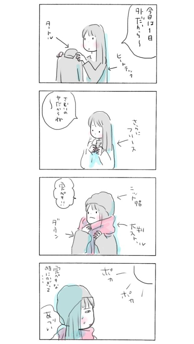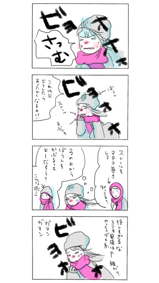 マチコ巻きからの帽子、我慢しました!(笑)#今日もいい日でした #イラスト #イラストレーション #4コマ漫画 #まんが #イラストエッセイ #コミックエッセイ #コミック #エッセイ絵日記 #日常漫画 #エッセイマンガ #暮らし #暮らしを楽しむ #イラストレーター #無印良品 #暮らしの記録 #あるある