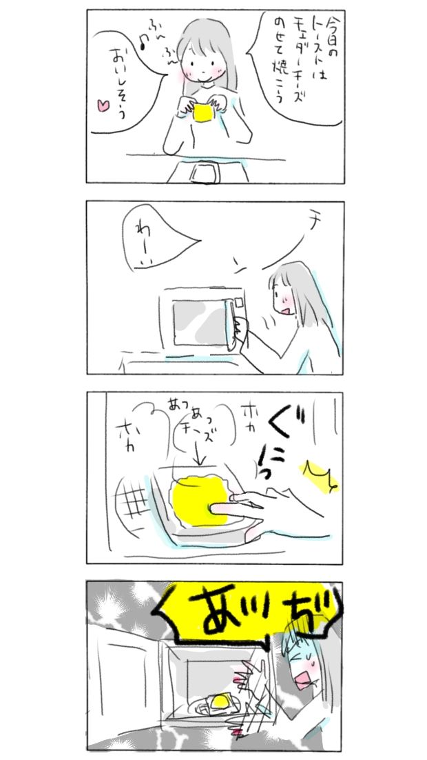 かなり熱くてビックリしました💦美味しかったです。☆アーバンライフメトロで4コマ漫画配信してます。こちらから#今日もいい日でした #イラスト #イラストレーション #4コマ漫画 #まんが #イラストエッセイ #コミックエッセイ #コミック #エッセイ絵日記 #日常漫画 #エッセイマンガ #暮らし #暮らしを楽しむ #イラストレーター #無印良品 #暮らしの記録 #あるある #チーズ #パン #トースト