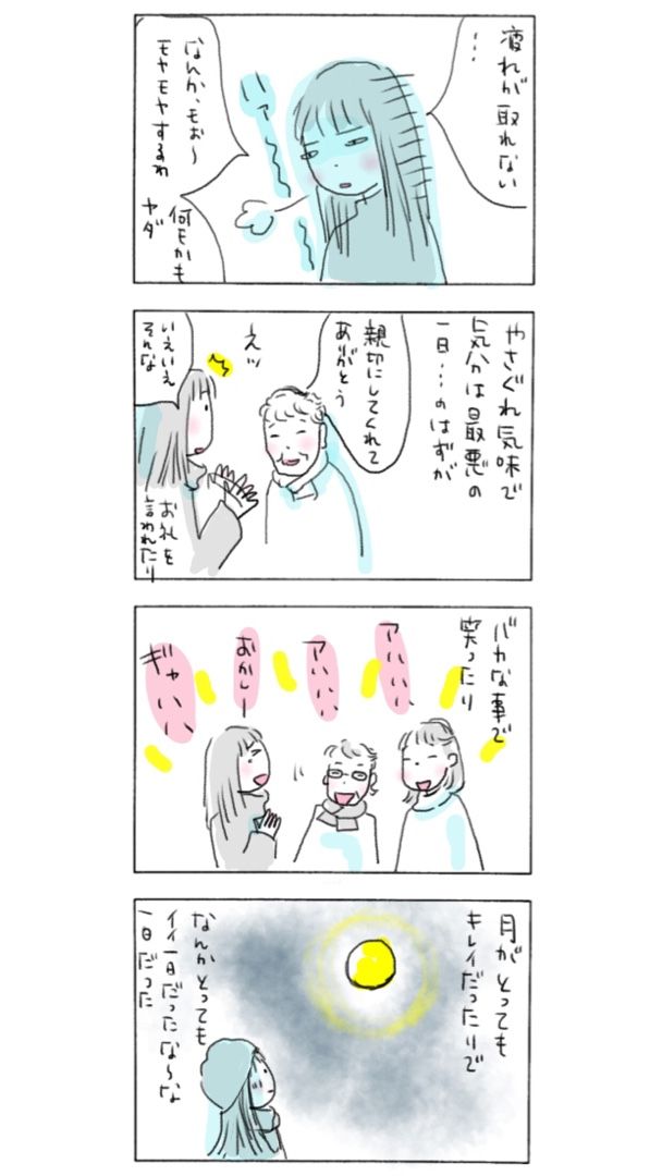取れなかった疲れもふっ飛びました。 #今日もいい日でした #イラスト #イラストレーション #4コマ漫画 #まんが #イラストエッセイ #コミックエッセイ #コミック #エッセイ絵日記 #日常漫画 #エッセイマンガ #暮らし #暮らしを楽しむ #イラストレーター #無印良品 #暮らしの記録 #あるある
