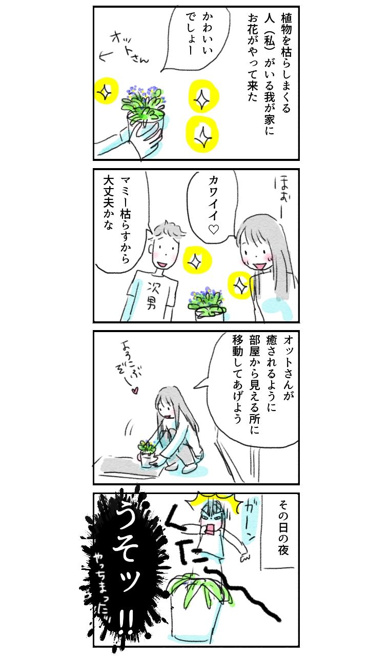 かまい過ぎなのかなぁ水の塩梅も悪いのか…トホホ〜#今日もいい日でした #note #イラスト #イラストレーション #4コマ漫画 #まんが #イラストエッセイ #コミックエッセイ #コミック #エッセイ絵日記 #日常漫画 #エッセイマンガ #暮らし #暮らしを楽しむ #イラストレーター #暮らしの記録 #あるある #note