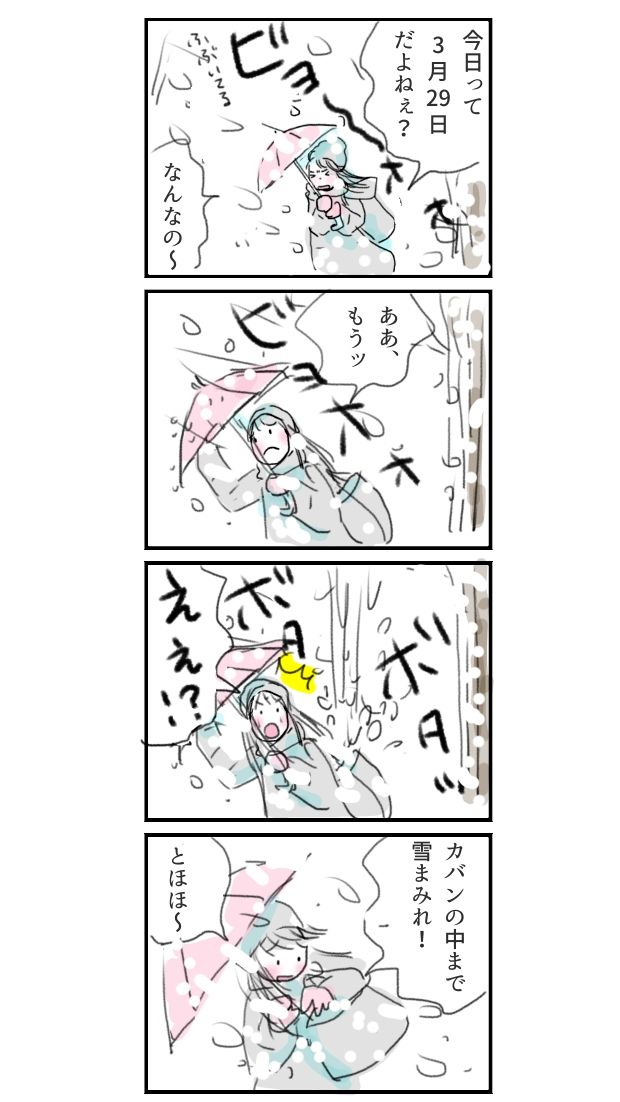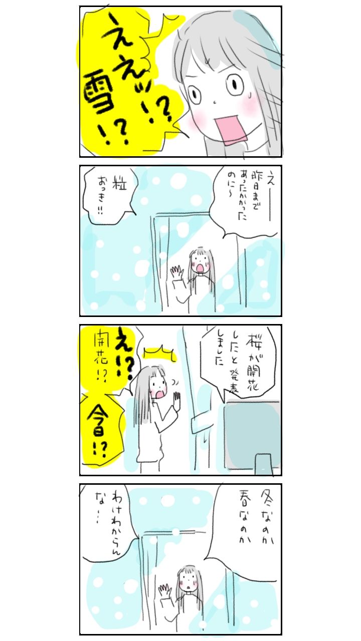 着るものも困るなぁ〜🙁#今日もいい日でした #イラスト #イラストレーション #4コマ漫画 #まんが #イラストエッセイ #コミックエッセイ #コミック #エッセイ絵日記 #日常漫画 #エッセイマンガ #暮らし #暮らしを楽しむ #イラストレーター #暮らしの記録 #あるある #雪 #開花 #桜 #開花宣言
