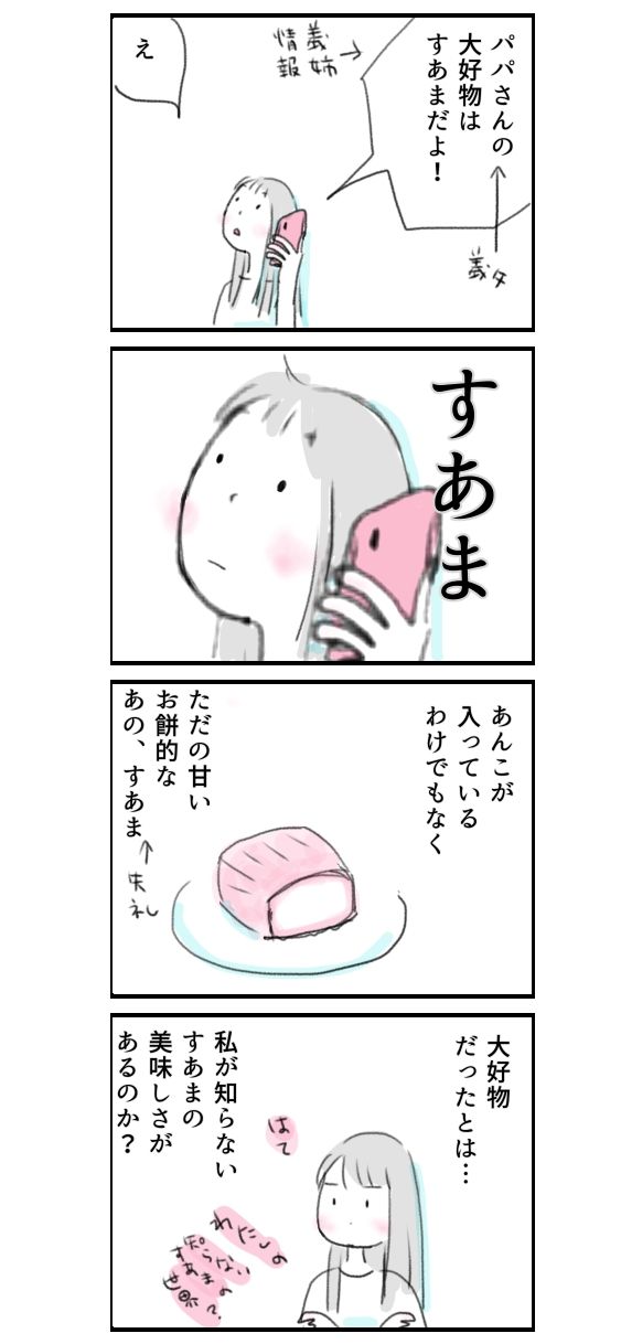 思えば…すあまって、まるまる1個食べた事ないかも。今度、味わってみようかな★ アーバンライフメトロでマンガが配信されました。今回は、超低空飛行で突進してきたツバメさんのお話です。制作インタビューも載っていますので、是非ご覧ください😀こちらから今回はママ友達とのLINEのお話はこちら。長い自粛生活でストレス爆発です!こちらから★イラストを担当しました。すずちゃんのはじめてのカメラとレンズ (上達やくそくBOOK) [ 鈴木知子(カメラ) ]価格:1760円(税込、送料無料) (2020/5/12時点)楽天で購入すずちゃんの理解して学ぶカメラとレンズ (上達やくそくBOOK) [ 鈴木知子(カメラ) ]価格:1760円(税込、送料無料) (2020/5/12時点)楽天で購入#今日もいい日でした #イラスト #イラストレーション #4コマ漫画 #まんが #イラストエッセイ #コミックエッセイ #コミック #日常漫画 #エッセイマンガ #暮らし #暮らしを楽しむ #イラストレーター #あるある #アーバンライフメトロ #お仕事情報