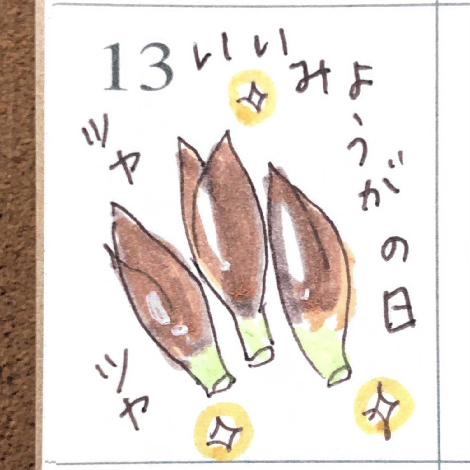 今日は「いいみょうがの日」6月がみょうがの旬であることと、1(い)い、3(み)ょうがの語呂合わせだそう。みょうが、大好きです。冷奴や、そうめんの薬味にと大活躍です。他にはどんな使い方があるのかな?調べてみよう【あす楽】漬物 味噌漬 茗荷 100g×2袋【みょうが ミョウガ 漬物 送料無料 みそ漬 グルメ食品 ご飯のお供 お取り寄せ ご飯の友 おかず 常温 保存 惣菜 メール便 sale 発酵食品】SS価格:1250円(税込、送料無料) (2022/6/12時点)楽天で購入#今日は何の日 #いいみょうがの日 #みょうが #イラストレーター #イラスト #手帳 #手帳好き #手帳の中身 #手帳タイム #手帳時間 #日記 #絵日記 #トラベラーズノート #トラベラーズノートレギュラーサイズ #サラサ #マイルドライナー #スタビロ