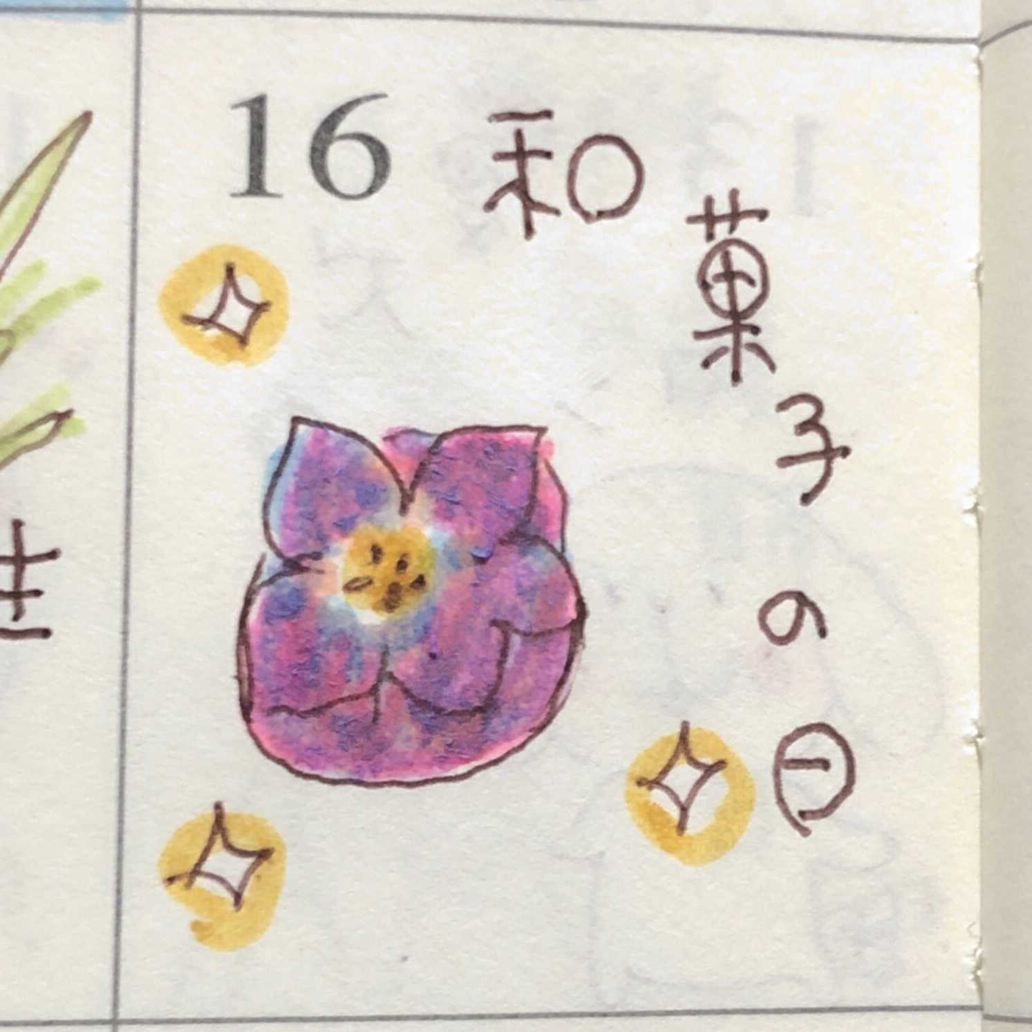 今日は「和菓子の日」6月16日は、嘉祥(かじょう)という行事が由来だそう。菓子を食べ厄除けと招福を願うという行事だったそうでなんてステキな行事!という感じです。笑和菓子、だいすきです。本当に繊細で美しくて、見てるとウットリします…美しい和菓子の図鑑 [ 青木 直己 ]価格:1899円(税込、送料無料) (2022/6/15時点)楽天で購入#今日は何の日 #和菓子の日 #和菓子 #イラストレーター #イラスト #手帳 #手帳好き #手帳の中身 #手帳タイム #手帳時間 #日記 #絵日記 #トラベラーズノート #トラベラーズノートレギュラーサイズ #サラサ #マイルドライナー #スタビロ #スタビロスイングクール #フリクション