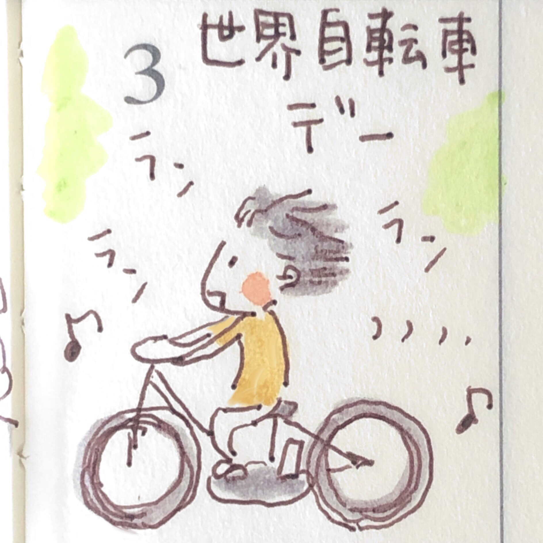 今日は「世界自転車デー」自転車の普及を促進するための国際デーだそう。自転車…よく乗ります。ランランラーン♪という感じで乗っています。以前、友達が自転車で走る私を見たそうで、「エコさん、人が歩く速度だよ、アレ」という感想をいただきました。爆のんびり走る自転車、好きです。SDGsの目標のひとつ、「エネルギーをみんなに そしてクリーンに」自転車、活用していきたいです。、#今日は何の日 #世界自転車デー #自転車 #SDGs #イラストレーター #イラスト #手帳 #手帳イラスト #手帳好きさんと繋がりたい #手帳好き #手帳の中身 #手帳タイム #手帳時間 #日記 #絵日記 #トラベラーズノート #トラベラーズノートレギュラーサイズ #サラサ #マイルドライナー #スタビロ