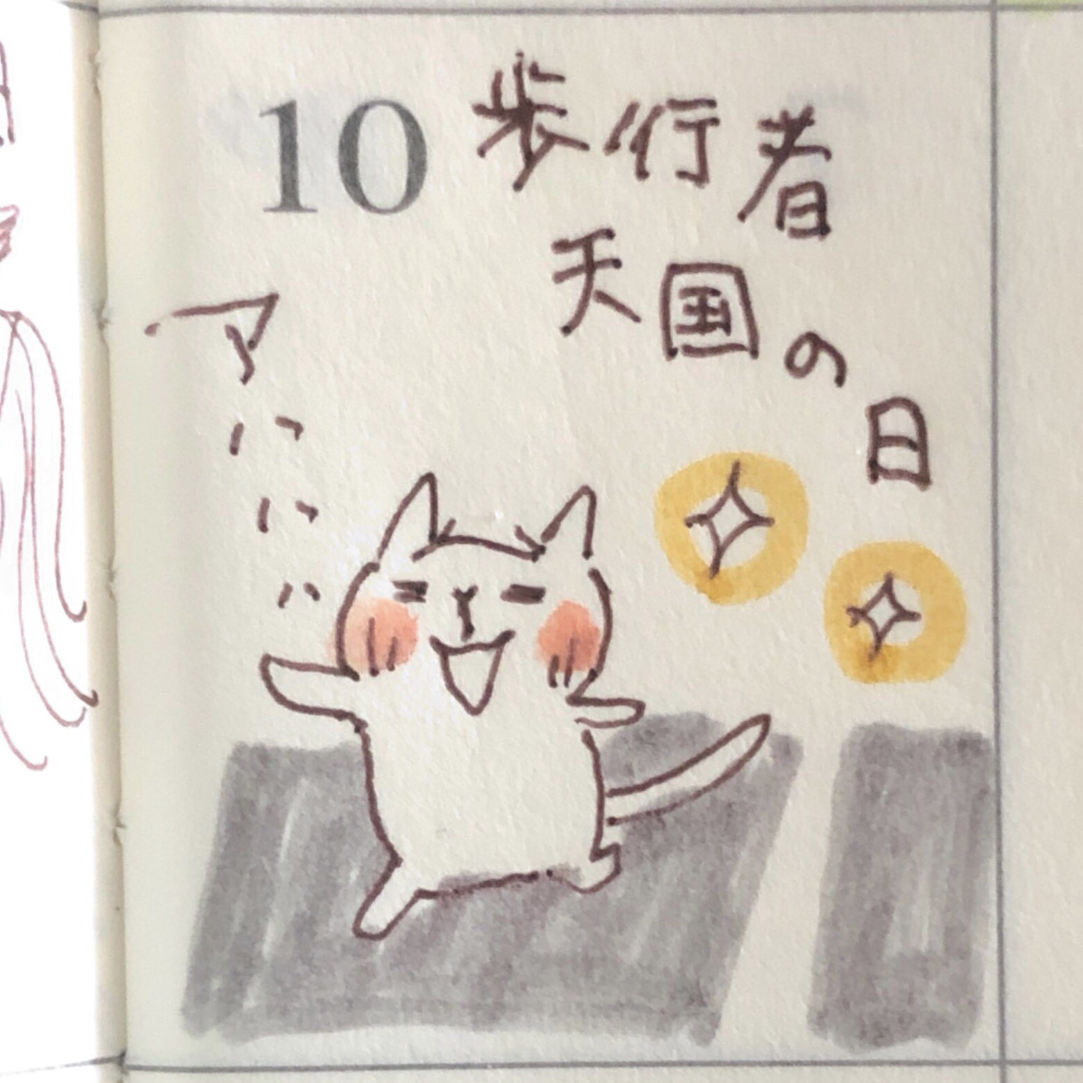 今日は「歩行者天国の日」1973年、銀座から上野までの歩行者天国が実施されたのが由来だそう。歩行者天国、テンション上がります。道路を広々伸び伸び歩けるのは気持ちいいです😊#今日は何の日 #イラストレーター #イラスト #手帳 #手帳好き #手帳の中身 #手帳タイム #手帳時間 #日記 #絵日記 #トラベラーズノート #トラベラーズノートレギュラーサイズ #サラサ #マイルドライナー #スタビロ