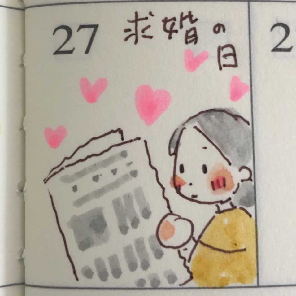 今日は「求婚の日」1883年(明治16年)1月27日、日本で初めて新聞に求婚公告が掲載されたことから。新聞に求婚広告!伊勢新聞と三重日報の2誌に掲載されたとか。しかもビックリしたのは、これを読んだ近くに住む19歳の女性が応募して結婚に至ったという…実るものなんですねぇ今はネットがありますが、昔は新聞だったのか…色々な婚活が昔からあるんですね。#今日は何の日 #求婚の日 #イラストレーター #イラスト #手書き #手書きイラスト #手描きイラスト #シンプルイラスト #手帳 #文房具 #文房具好き #文具 #手帳好き #手帳の中身 #手帳タイム #手帳時間 #日記 #絵日記 #トラベラーズノート #トラベラーズカンパニー #日々の暮らし #サラサ #ゼブラ #マイルドライナー #スタビロ #スタビロスイングクール #pilotpen #フリクション