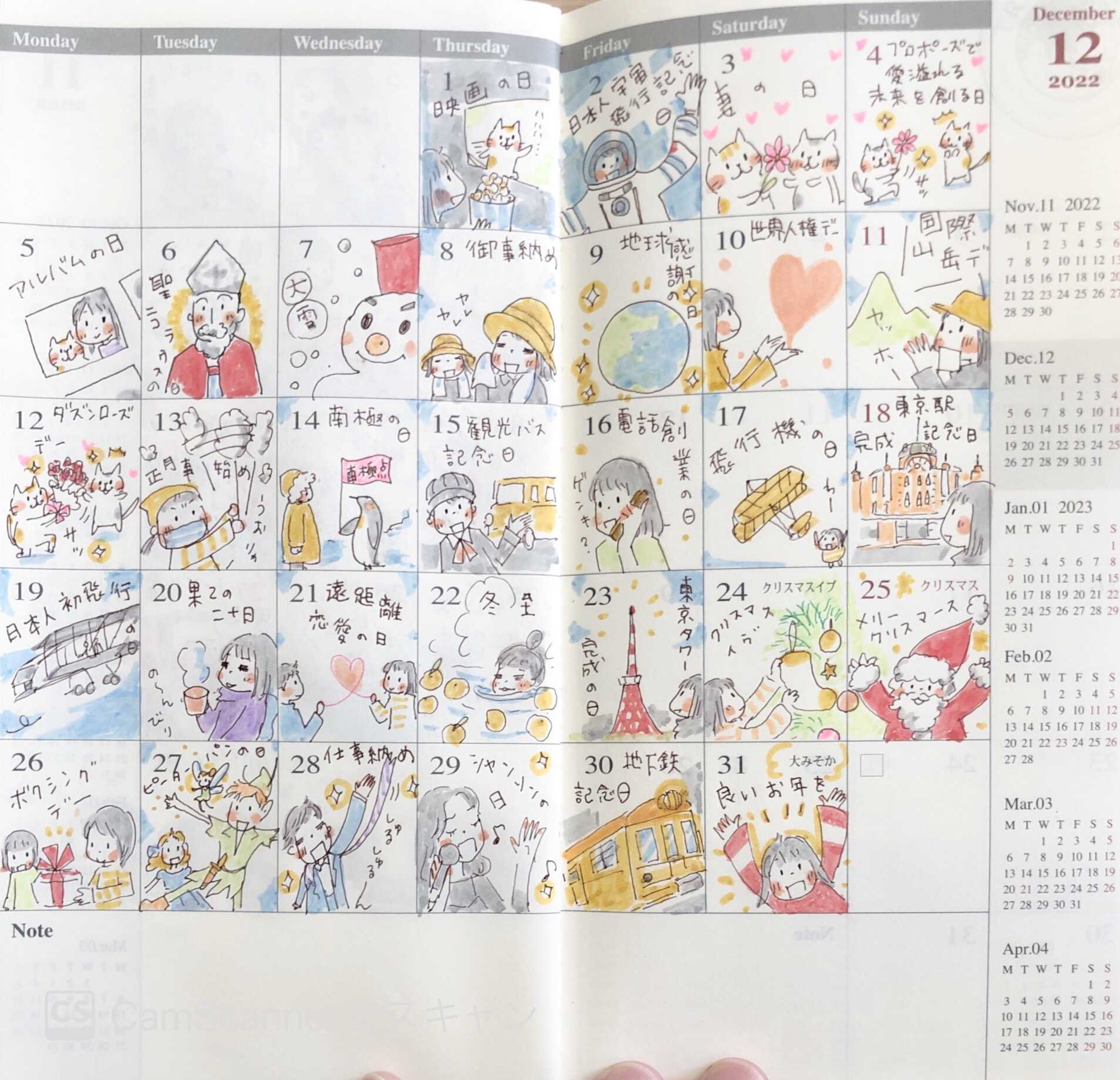お久しぶりです!ちょっとバタバタしていました。まだ、ちょっとバタついていますが、一息ついたのでまたブログをアップしていきたい思います。まずは12月の「今日は何の日」まとめです。12月…なんかもう遠い昔のように思います。今は2023年なんですよね。今年も早いのかなぁ〜2023年も一日一日を大切にしよう。#今日は何の日 #イラストレーター #イラスト #手書き #手書きイラスト #手描きイラスト #シンプルイラスト #手帳 #文房具 #文房具好き #文具 #手帳好き #手帳の中身 #手帳タイム #手帳時間 #日記 #絵日記 #トラベラーズノート #トラベラーズカンパニー #日々の暮らし #サラサ #ゼブラ #マイルドライナー #スタビロ #スタビロスイングクール #pilotpen #フリクション