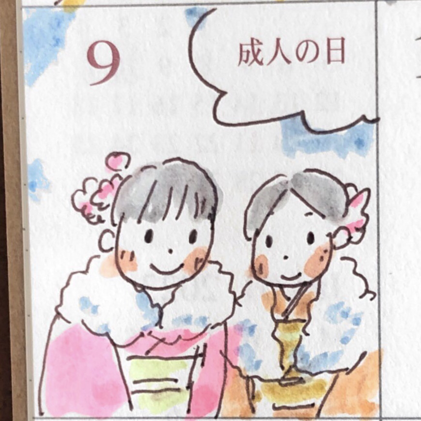 今日は「成人の日」今日の天気は快晴!気持ちいい成人の日になりました。自分の成人式の日のことを思い出して懐かしいです。#今日は何の日 #成人の日 #イラストレーター #イラスト #手書き #手書きイラスト #手描きイラスト #シンプルイラスト #手帳 #文房具 #文房具好き #文具 #手帳好き #手帳の中身 #手帳タイム #手帳時間 #日記 #絵日記 #トラベラーズノート #トラベラーズカンパニー #日々の暮らし #サラサ #ゼブラ #マイルドライナー #スタビロ #スタビロスイングクール #pilotpen #フリクション