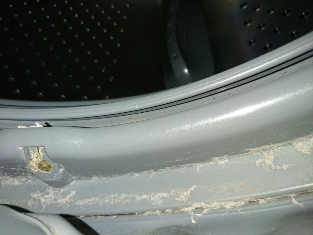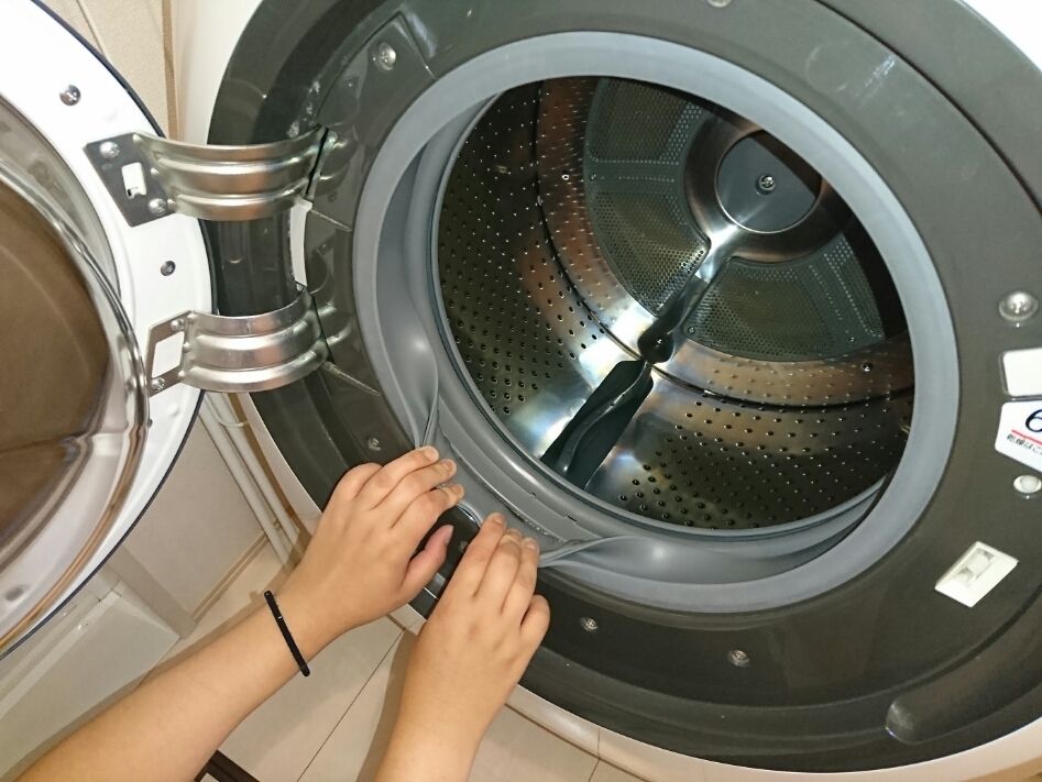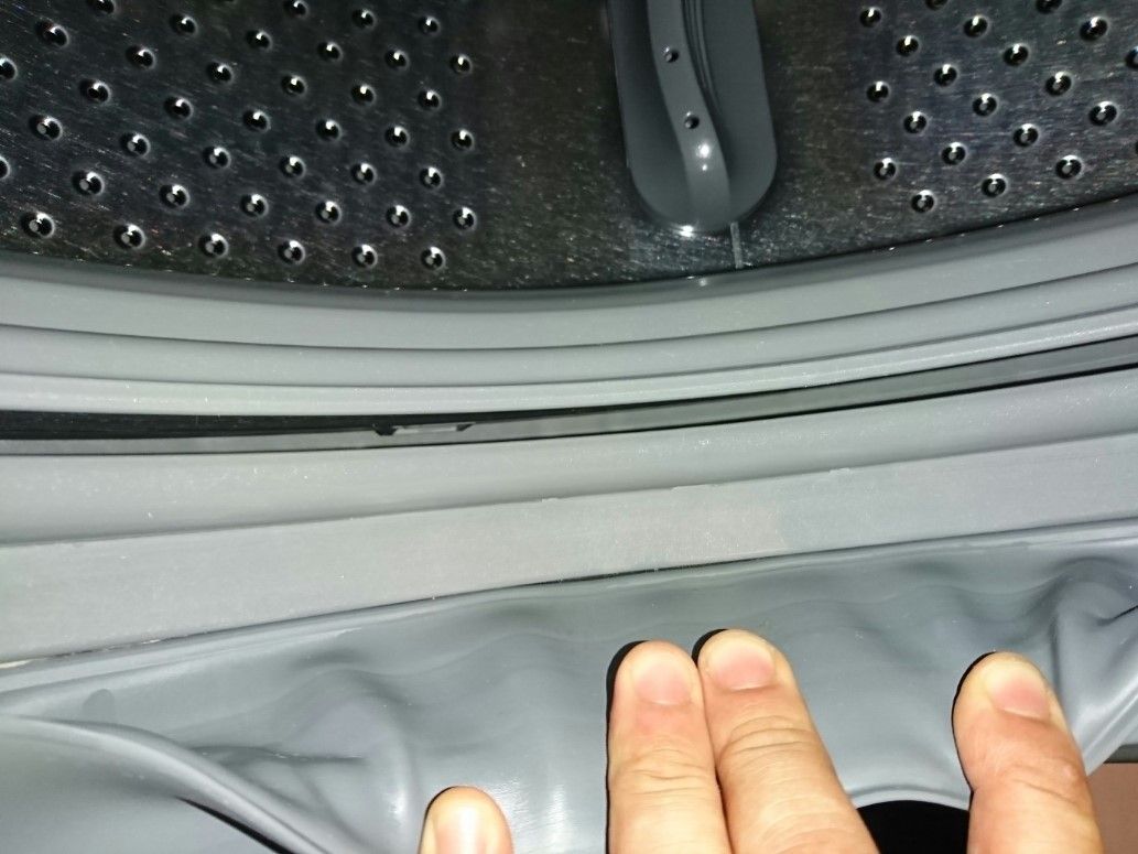 と、妻、写真のとおり、ドラム式洗濯機の入口のビロビロをめくってみせた。