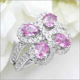 指輪◆◆ジュエリー◆ K18WGダイヤ&ピンクサファイヤ フラワーリング 『スイート10ダイヤモンド』PTダイヤリング ブリリアントクロスフォー 【送料無料】Pt900 ダイヤリング