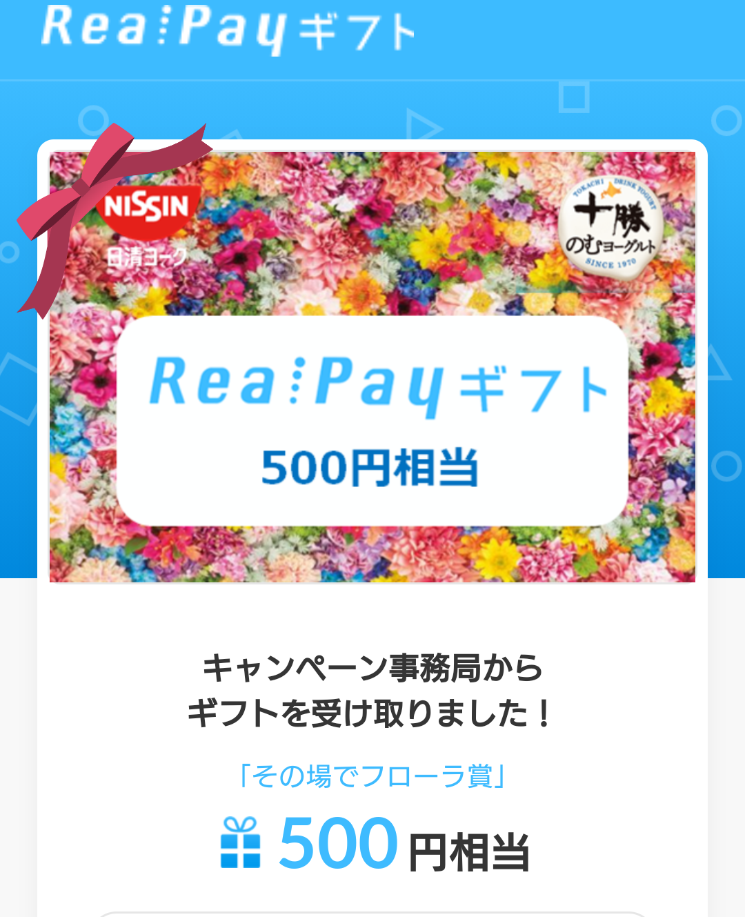 その場でフローラ賞RealPayギフト 500円当選!2021/10/12