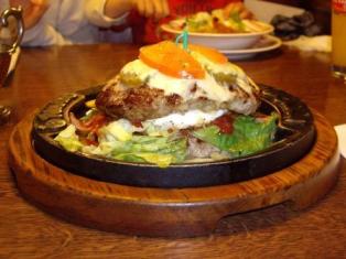 今日は、仕事が終わって速攻ダッシュで帰宅!!ラリーパパの家の近所のファミレス通称「トマオニ」で夕食を食べようと、嫁さんと約束していたからです。先日、新聞広告で「トマオニ」の新メニューが登場したのを知ったんですが、その中に、「メガトンハンバーグ」なるものがあったんです。ハンバーグを2段重ねにして、その間にベーコンと目玉焼きがを挟まれている…まさに、メタボリック直行便!!ハンバーグ好きには堪らない一品!!のはず…笑気になって仕方なかったので、本日行ってきました。メガトンハンバーグなるものを食しに…笑で、実物は…じゃじゃ~ん!!かなり大きかったです。食べ応えアリ!!でした。う~ん。満足!!メタボリックが気になる!気になる!のに…食べちゃうんですよね~。笑この背徳感と食欲の狭間で揺れ動く微妙なオッサン心分かってもらえるかな~?笑更新の励みになります。